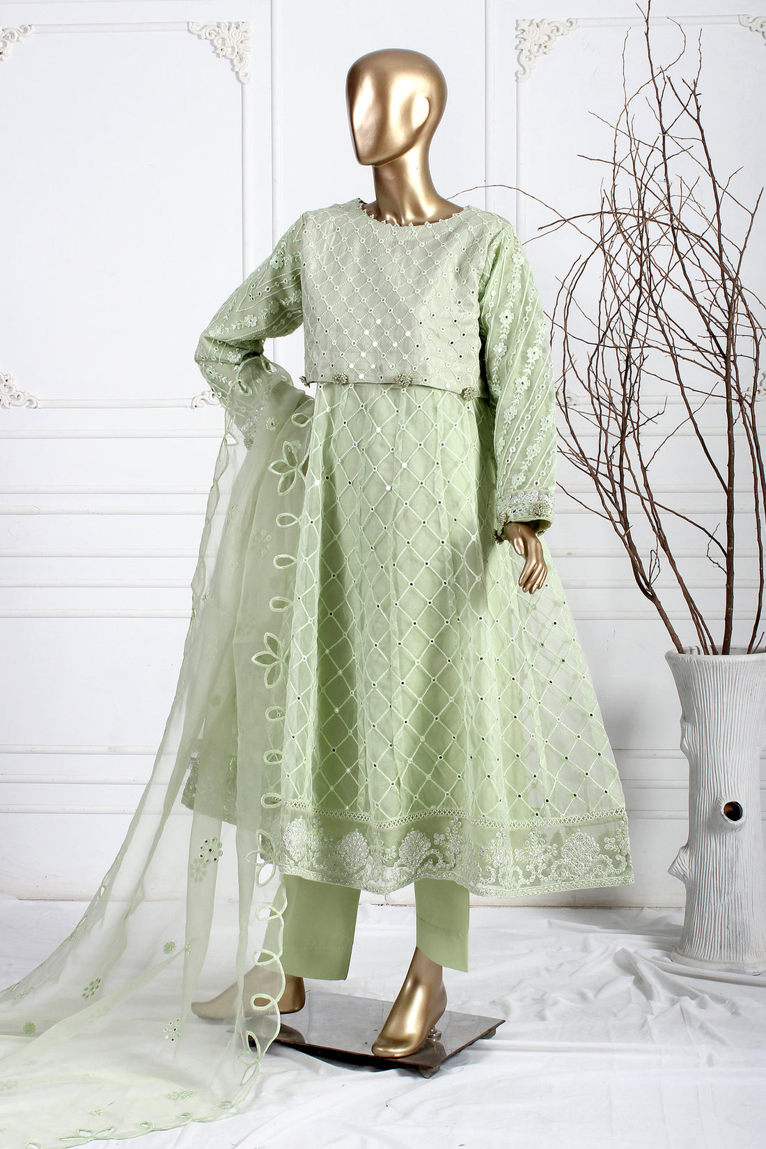 Ready To Wear Body fabric: Viscose Frock Fabric: Organza Trouser fabric: MalaiDupatta fabric: Organza Adorn...