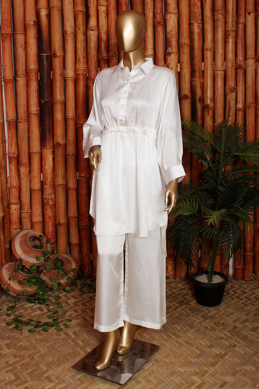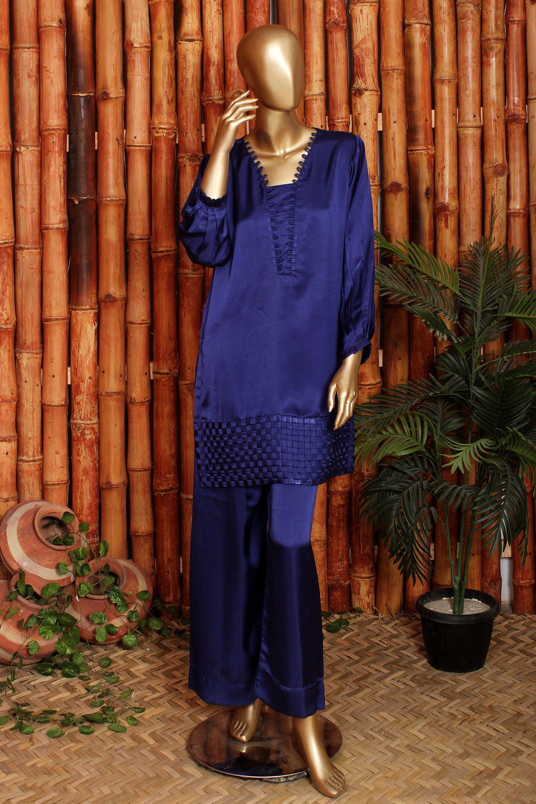 Key Features: Fabric: 100% Shamoz Silk Design: 2-piece set (Shirt & Trouser) Stitching: Premium finishing...