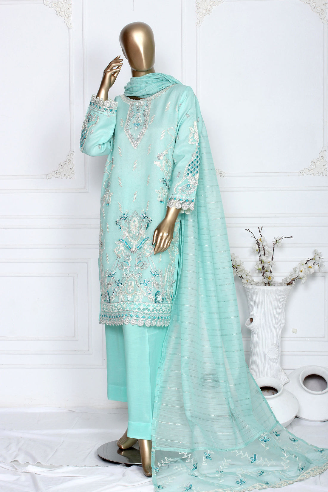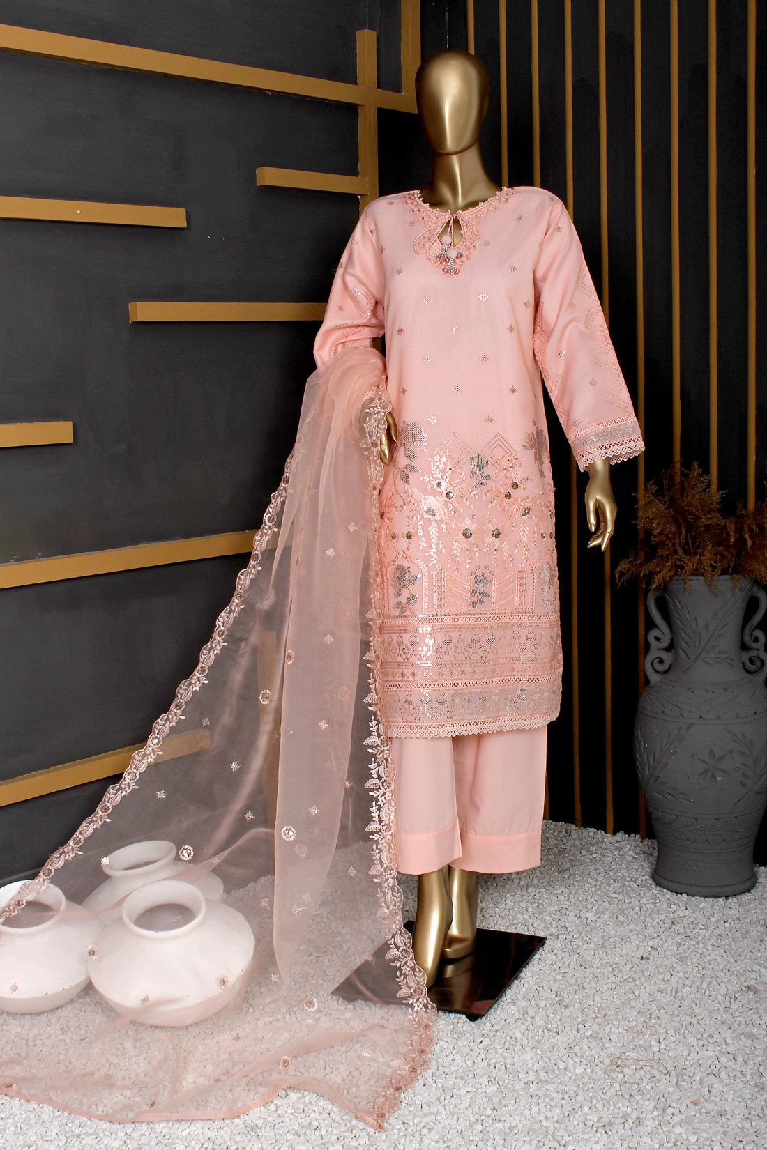 Ready To Wear Shirt fabric: Khaddi Net Trouser fabric: ViscoseDupatta fabric: Sequins Monar Adorn yourself...