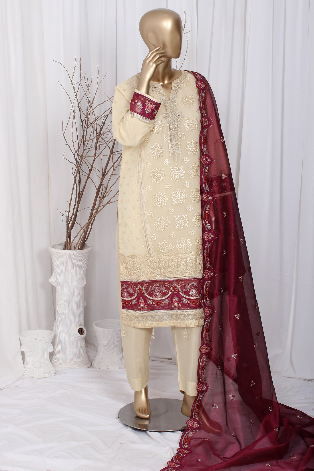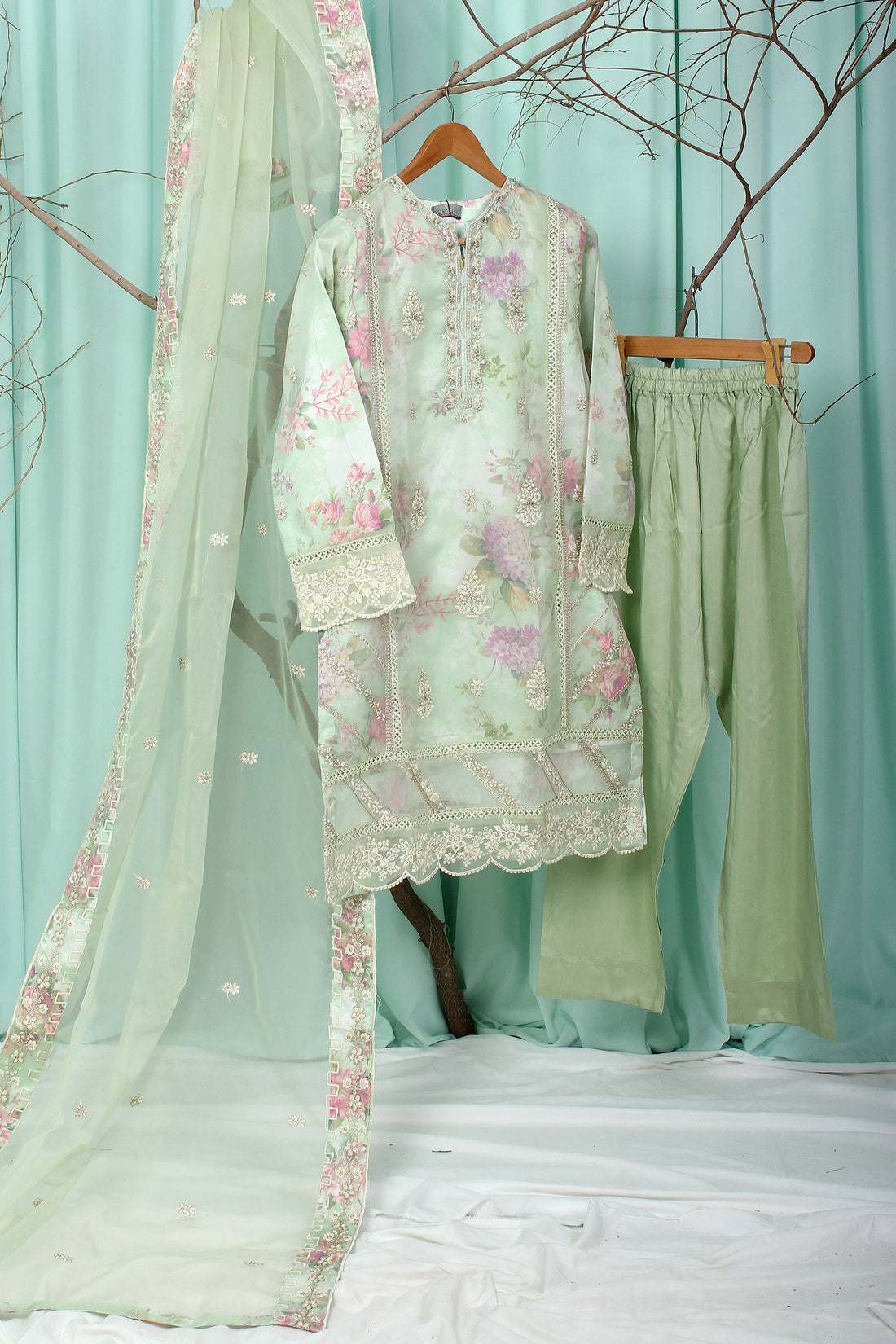 Ready To Wear Shirt fabric: Organza Trouser fabric: ViscoseDupatta fabric: Khaddi Net Elegant embroidered organza...