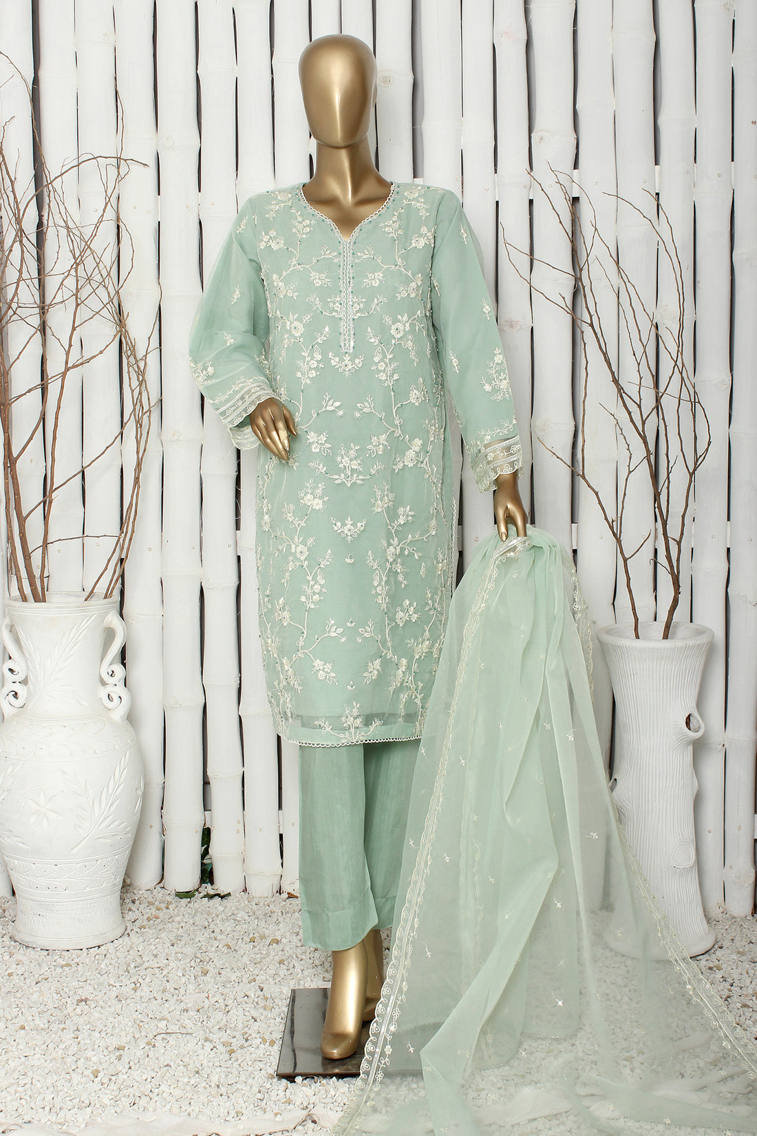 Ready to wear 3-Pcs✨ Fabric Details:✔ Shirt: Premium Embroidered Organza✔ Dupatta: Premium Embroidered Organza✔ Trouser:...