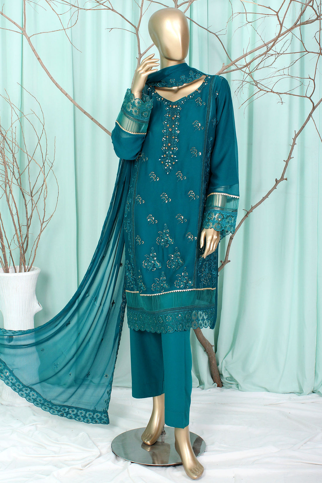 Ready To Wear Shirt fabric: Chiffon Trouser fabric: MalaiDupatta fabric: Chiffon This ensemble features a chiffon...