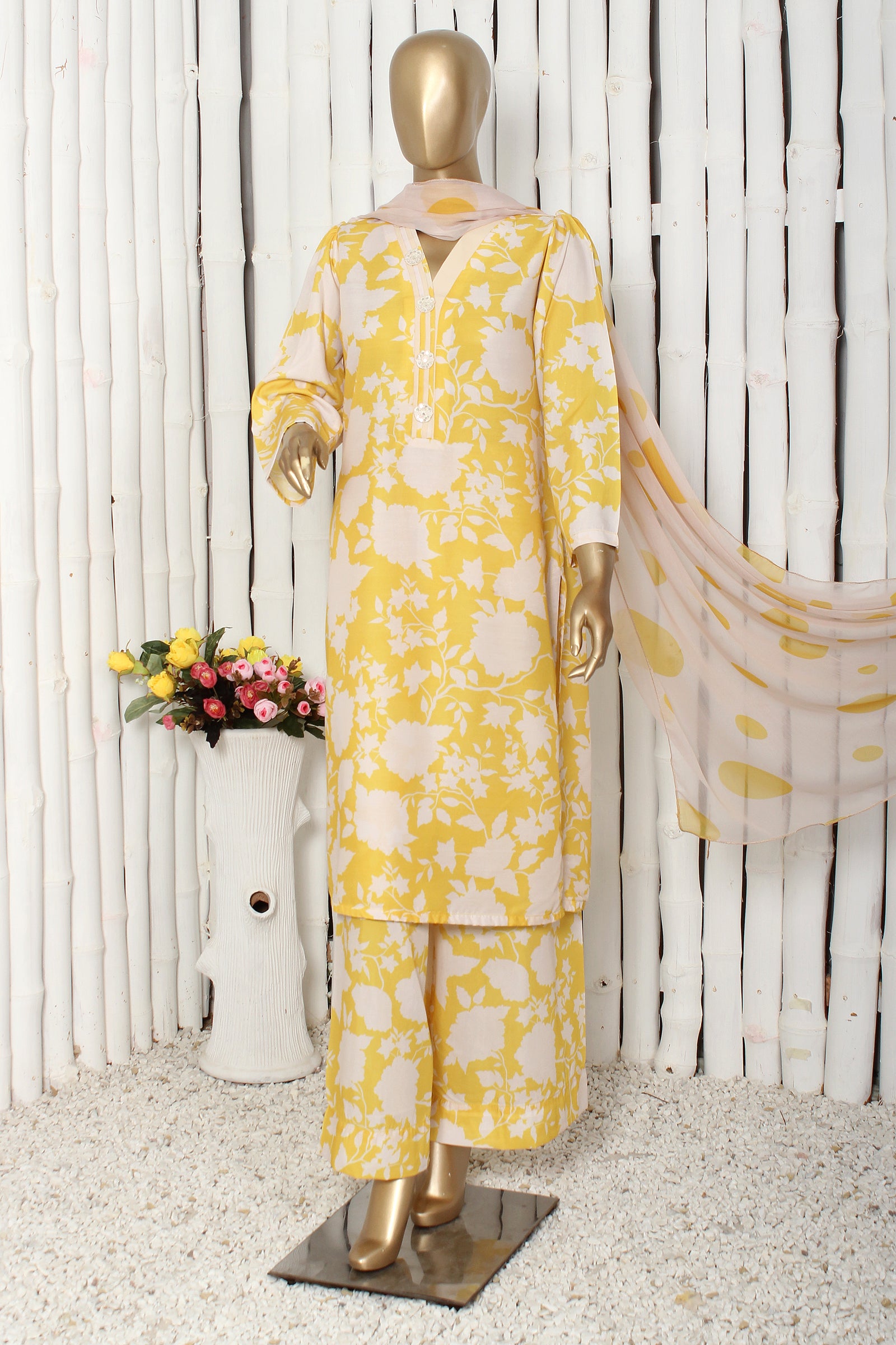 Premium 3-piece suit featuring soft printed Swiss lawn and elegant detailing—perfect for everyday chic.